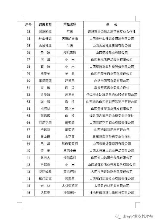 附件:擬入選2021年山西特優(yōu)農(nóng)產(chǎn)品品牌目錄庫名單